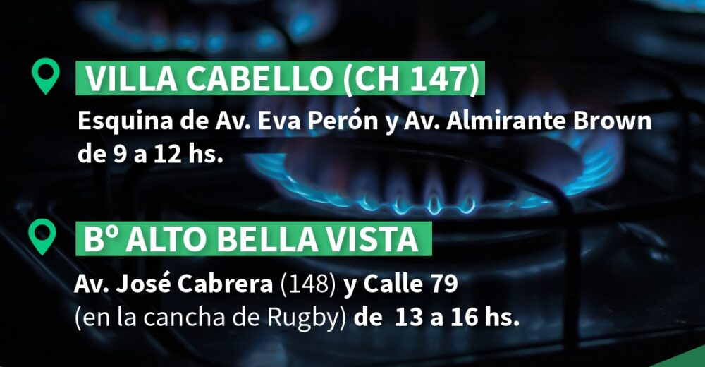 El operativo Ahora Gas estará este viernes por la mañana en Villa Cabello, mientras que por la tarde en el barrio Altos de Bella Vista.