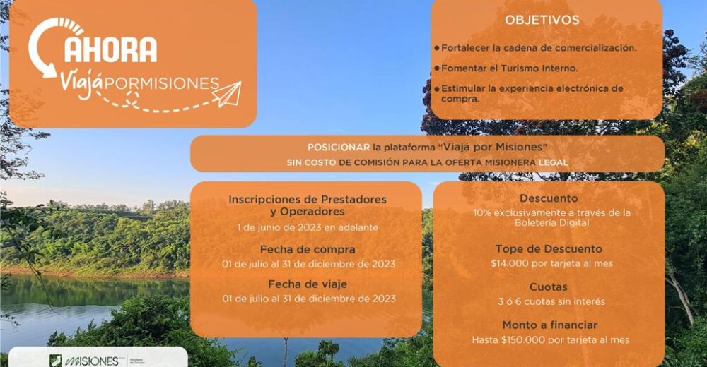 Los Ministerios de Turismo y de Hacienda de la provincia llevan adelante una propuesta para incentivar el turismo interno. «Ahora viajá por Misiones» se llama el programa que entrará en vigencia desde el 1 de julio hasta el 31 de diciembre de este año, tanto para la compra como para la realización del viaje.