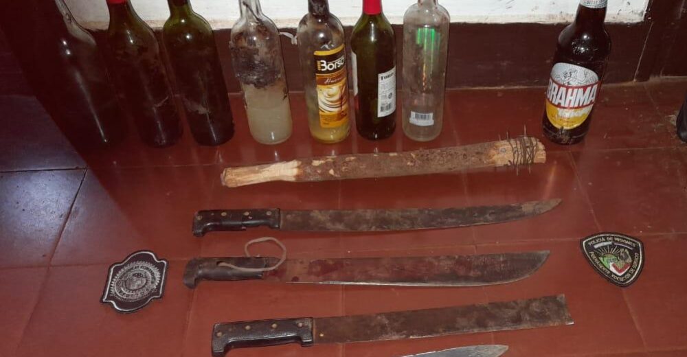 Por esta razón, irrumpieron en la morada que utilizaban como guarida, donde se detuvo a los sospechosos y se secuestraron, “cócteles molotov”, un palo cubierto con clavos, machetes y cuchillos.