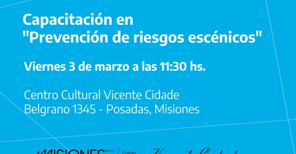 La capacitación será sobre «Prevención de Riesgos Escénicos», es la primera del año y se enmarca dentro de las capacitaciones y el «Relevamiento Técnico Escénico» que lleva adelante la Red Federal de Teatros, el Ministerio de Cultura de la Nación, junto al Teatro Cervantes en articulación con el INAMU y el SATE. El objetivo es, principalmente, capacitar a aquellas personas que se desempeñan en áreas técnicas de montaje, producción y gestión cultural. Cabe destacar que las capacitaciones en prevención de riesgos escénicos se harán en todas las provincias del país y el relevamiento técnico escénico se llevará a cabo en más de 90 salas que integran la Red Federal de Teatros.