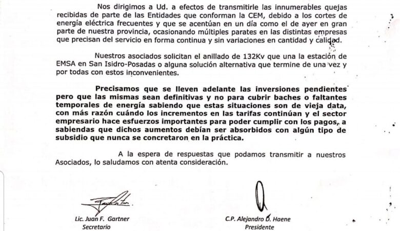 La CEM reclama soluciones definitivas por perjuicios económicos que ocasionan cortes de energía