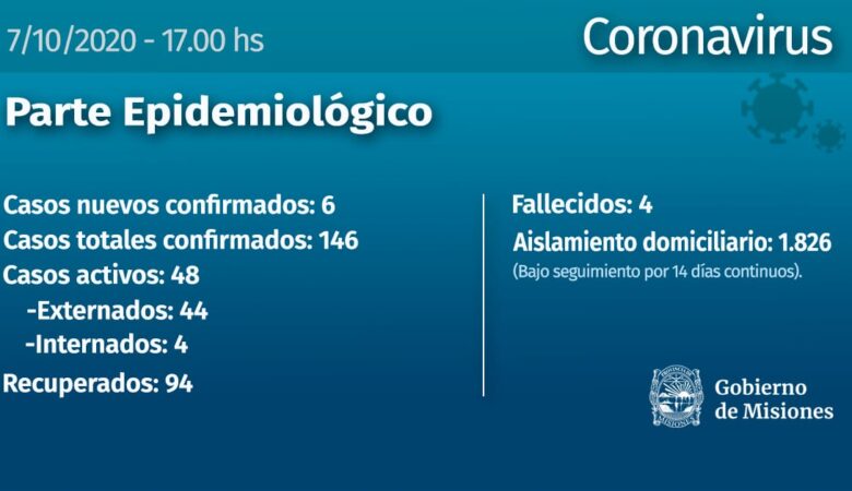 Coronavirus: Otros 6 casos se confirmaron en Misiones y la cifra asciende a 146