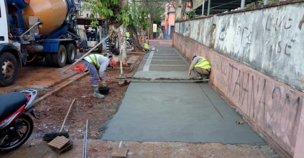 Un equipo técnico viene desarrollando un relevamiento para realizar esta tarea en los lugares donde el grado de roturas sean altos. En este sentido, se realiza la demolición, la nivelación, compactación del terreno y la reconstrucción de la vereda nueva de hormigón peinado.