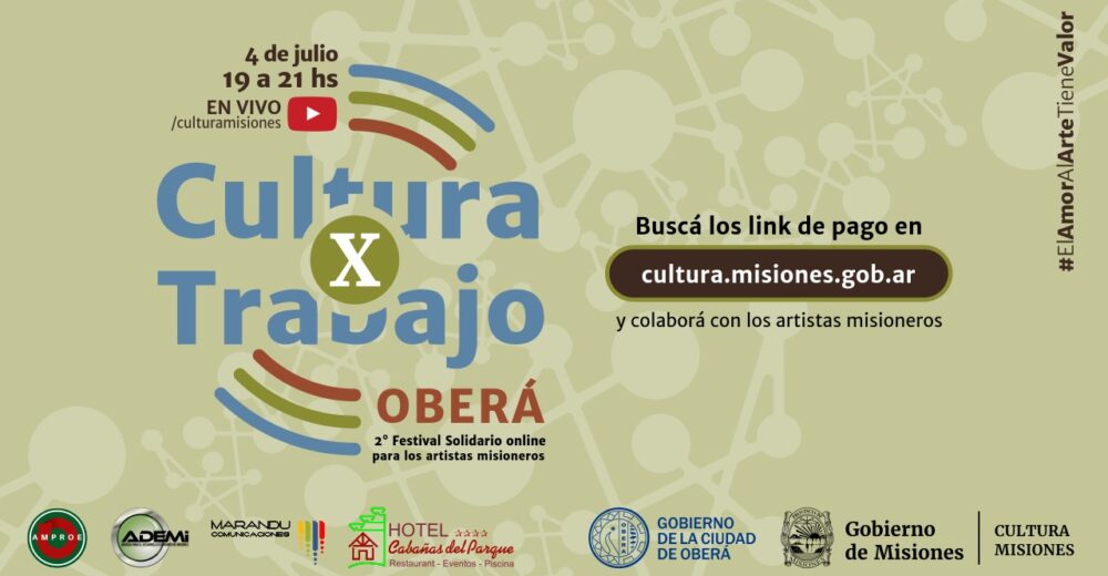 El Festival Solidario vía streaming organizado por la Secretaría de Cultura será este sábado a partir de las 19 Hs. desde el hotel Cabañas del Parque. En la web cultura.misiones.gob.ar se encuentran los links de pago para colaborar con los artistas participantes.