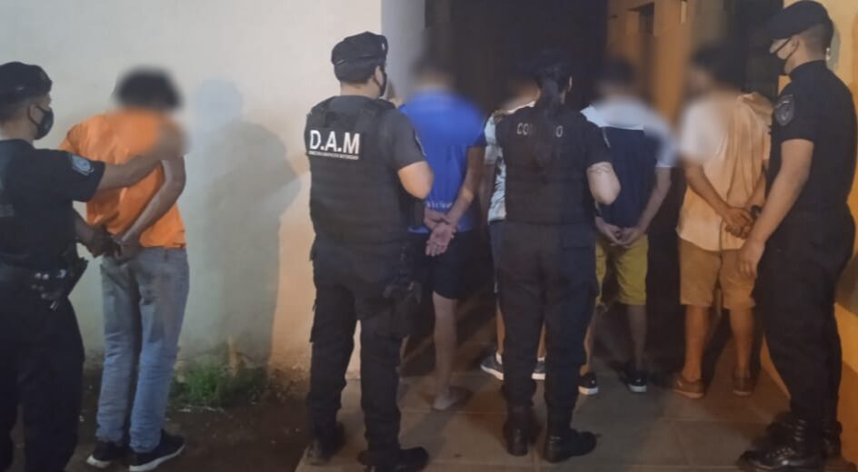 Anoche, en varios puntos de la ciudad fueron detenidos cinco hombres acusados de robarle el celular a un vecino de 33 años, luego de intimidarlo con un cuchillo en la avenida Lavalle casi Comandante Andresito.