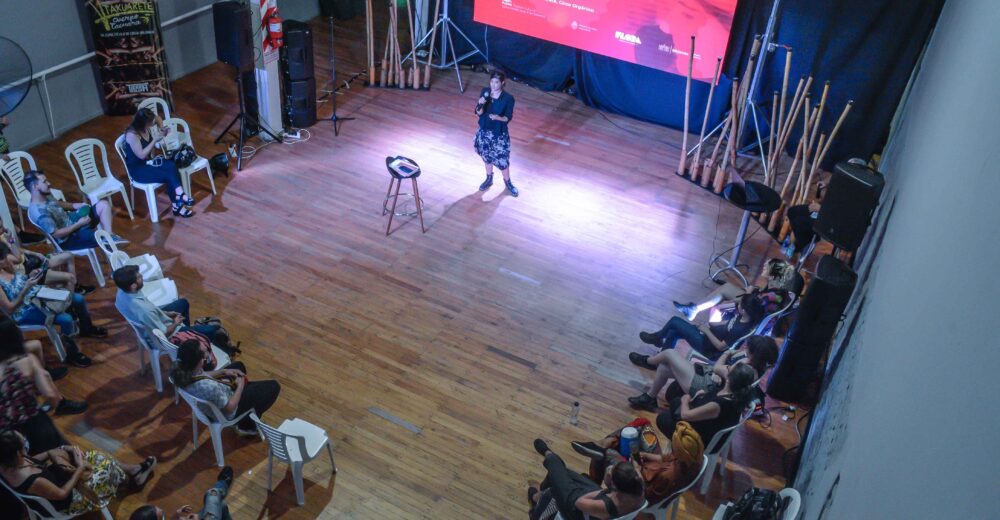 Luego de los aplausos, se inició la charla de Paola Lalia, coordinadora del Sector Circo de la Dirección Nacional de Industrias Culturales. En el año 1998 se acercó al circo, desde los centros culturales, y en el año 2002 entro a la Escuela de Circo Criollo, especializándose en acrobacias y trapecio. En 2007 se recibió́ de Profesora de Nivel Inicial y realizo un post título en Educación Popular.