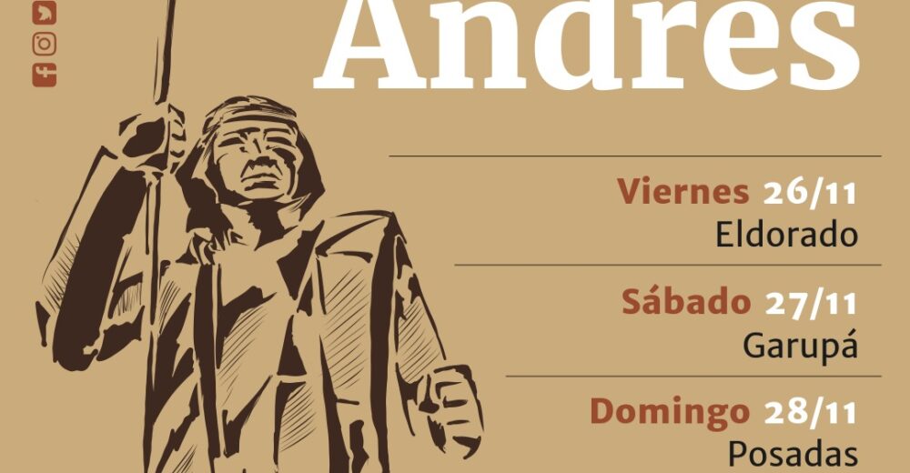 Posadas en Vigilia por AndrésEl cierre de la «Vigilia por Andrés» tendrá lugar el domingo 28 en la Costanera de Posadas, en la zona que abarca desde el monumento a Andrés hasta la plazoleta del Papa. La fiesta se iniciará a las 19 Hs con un recorrido de bailarines, artistas y músicos. Cabe destacar que en esa jornada quedarán habilitados en torno a la escultura de acero de Andresito una serie de códigos QR, a partir de los cuales se podrá «levantar» con el teléfono libros y material bibliográfico sobre el héroe indio.