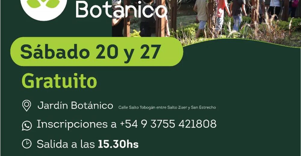 El sábado 20 de julio, Oberá ofrecerá un paseo guiado por su Jardín Botánico, y el domingo, a las 15.30 horas, un recorrido por el Jardín de los Pájaros, ideal para disfrutar en familia. Inscripciones al WhatsApp: 3755 421808.