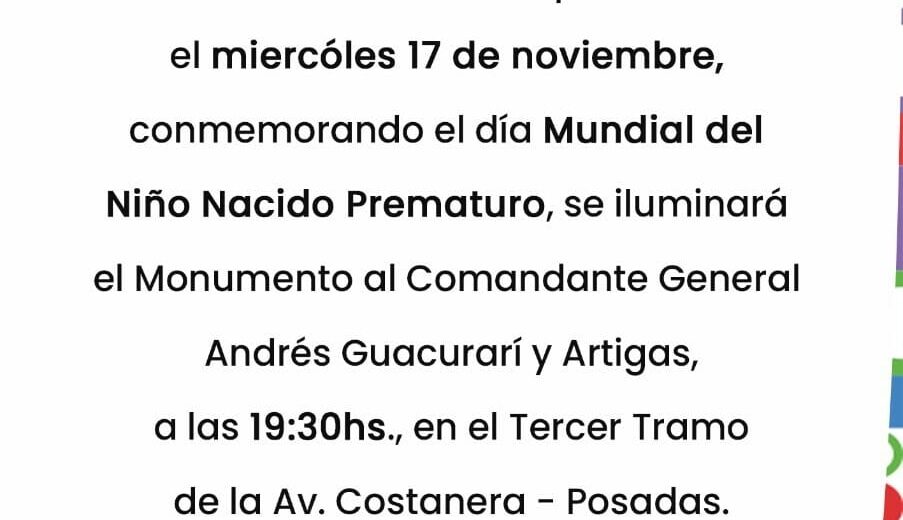 A las 19.30 Hs. en el monumento al comandante Andresito se iluminará de lila y se realizará una suelta de mariposas organizada por la Fundación Pequeños Gigantes.