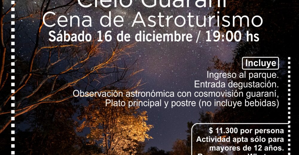El evento tiene cupos limitados y un valor de $11.300 por persona que incluye: ingreso al Parque, entrada degustación, observación astronómica con cosmovisión guaraní, plato principal y postre (no incluye bebidas).