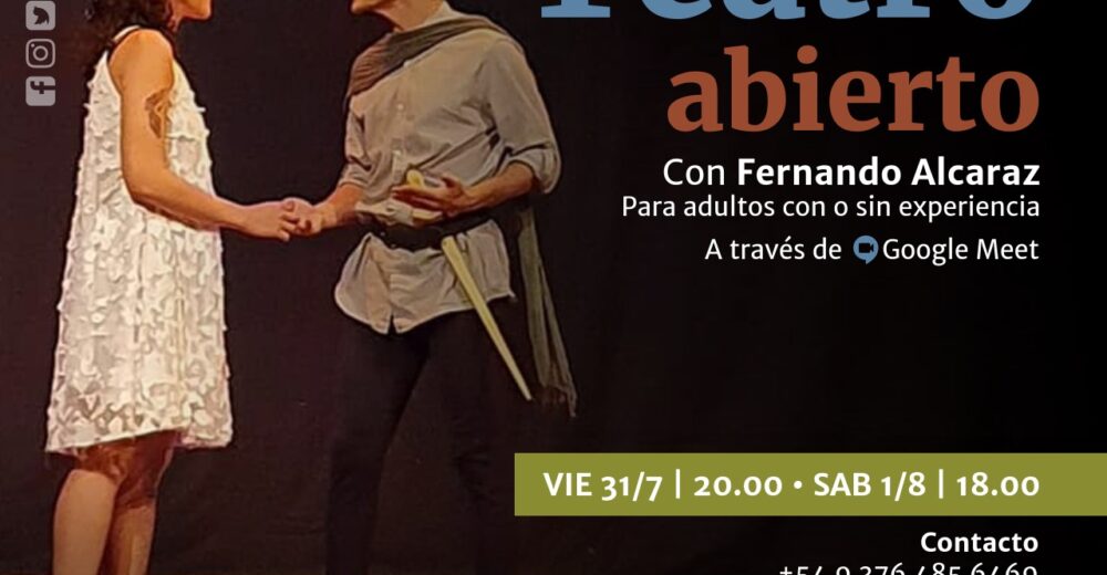 En el marco de los Talleres Virtuales propone un Taller de teatro abierto, para adultos con o sin experiencia. A través de 2 módulos de hora y media cada uno, el docente hará clases prácticas sobre la actuación, el autoconocimiento y las teatralidades a través de juegos teatrales. No hace falta experiencia previa.