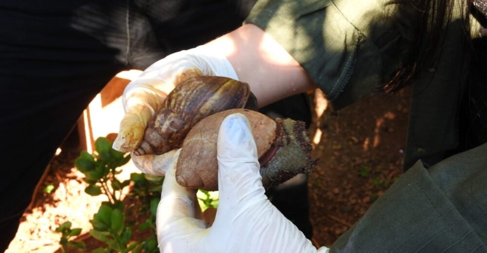 Los técnicos recorrieron el área en busca de especímenes, a fin de recolectar y realizar la disposición final de los ejemplares denominados científicamente como “Achatina fulica”.