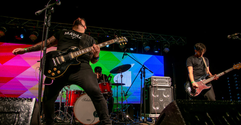 Hablemos de rockA puro funky, y con un sonido que por momentos ensambla distintas vertientes rockeras, el cuarteto The Mammachas, abrió el fuego con un show especial para despabilarse de la siesta dominguera. Con la conducción de Alejandro «el Cuervo» Ojeda y el Japo Fleitas, la continuidad estuvo a cargo de Gon de Llano & Big Banda. De la mano del saxofón de Lucas Giménez, la banda se hizo fuerte con un set afilado, en el que orillaron ritmos como el funk y el reggae, dando a conocer algunas composiciones recientes. Siguiendo con la fusión rítmica, llegó Gurí, que abrió con un reggae instrumental y terminó cerrando con una luminosa interpretación de su canción «Volver a ser gurí», que entrevera la galopa con el rock.