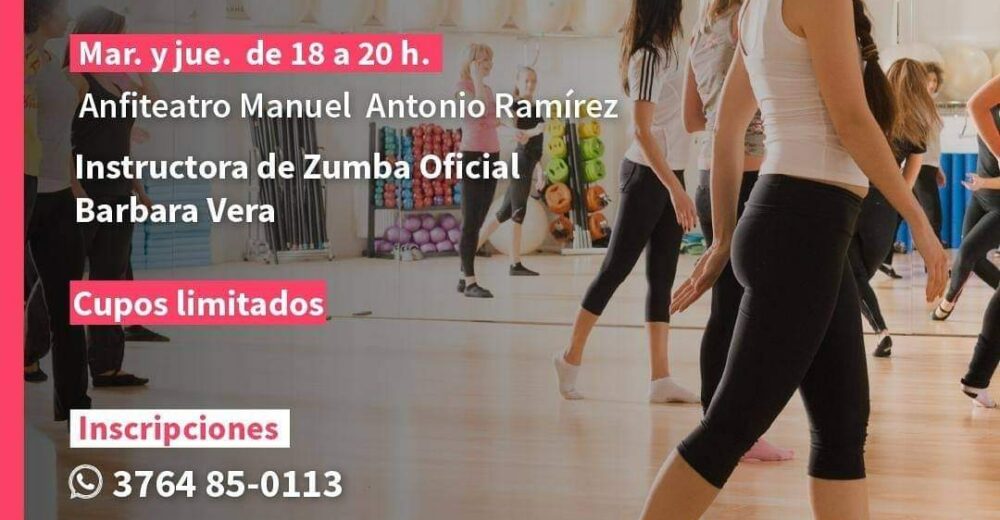 La práctica de entrenamiento funcional de Zumba se puede realizar los martes y jueves, de 18 a 20 horas. Los interesados se deberán comunicar con la instructora Bárbara Vera al celular: 3764- 850113. Los cupos son limitados.