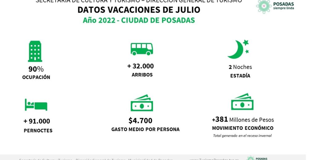 El Municipio a lo largo del mes de julio ofreció diversas propuestas para que posadeños y turistas disfrutaran del receso invernal. El movimiento turístico en esta temporada promedio el 90% de ocupación hotelera, con más de 32 mil arribos.