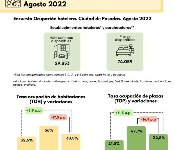 La actividad hotelera, de las más castigadas por la pandemia, evidencia signos de recuperación y se mantiene en crecimiento, según informó la Oficina de Gestión de Datos de la Municipalidad de Posadas. Basándose en el último informe del Instituto Nacional de Estadística y Censos (Indec), la entidad municipal destacó que en agosto los hoteles y establecimientos afines en la capital misionera se registraron una tasa de ocupación del 38,5% de las habitaciones y del 32,8 % de las plazas respecto al mes de agosto de 2021.