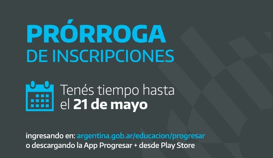 El Ministerio de Educación, Ciencia y Tecnología informa que se ha prorrogado la fecha final de inscripción al programa de becas Progresar hasta el 21 de mayo. Para aquellos mayores de 18 años, que aún no se hayan inscripto, podrán recibir acompañamiento del equipo técnico del programa Estudiantes Misioneros, en todas las redes sociales, y al correo [email protected] o ingresar a la página progresar.educacion.gob.ar.