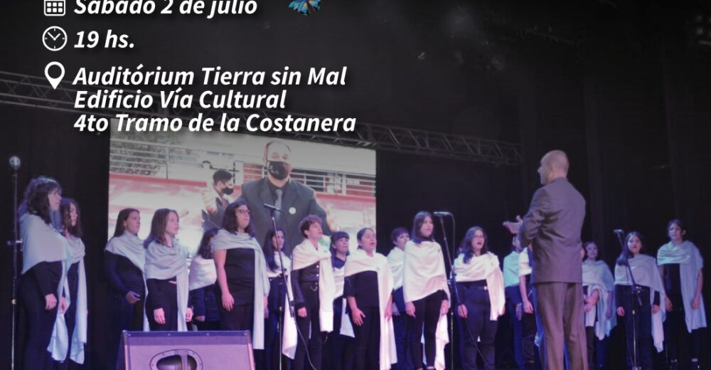 En el marco del programa municipal “Posadas Turística y Cultural”, este sábado 02 de julio, desde las 19 hs, se llevará a cabo el Primer Encuentro de Coros Municipal, en el Auditórium Tierra Sin Mal, del edificio Vía Cultural del Cuarto Tramo de la Costanera.