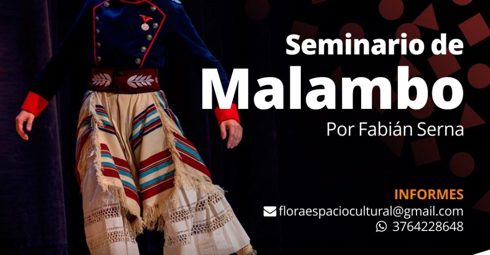 El sábado 2 de abril en Espacio Flora (Santa Fe casi Tres de Febrero, Posadas), se llevará a cabo un seminario de Malambo a cargo del bailarín, coreógrafo, director artístico y actor Fabián Serna quien, entre otros palmarés, fue Campeón Nacional de Malambo en 2020.